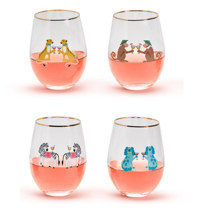 How fun and adorable is this set of animal cheers stemless wine glasses? These would go perfectly paired with our party animal cotton embroidered napkins. These glasses will bring a chic touch to your favorite barware assortment or party!