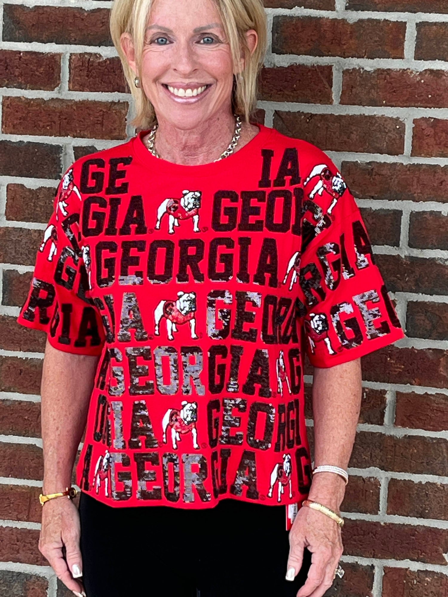 Experience the spirit of Georgia with the Stewart Simmons - UGA Tee - Georgia Repeat. This vibrant red shirt, crafted from 100% cotton, offers both comfort and style, making it the perfect addition to your wardrobe. The bold "Georgia" print showcases your pride for the University of Georgia, whether you're cheering from the stands or enjoying a casual day out. With its soft fabric and classic fit, this tee is designed for everyday wear, ensuring you stay comfortable while representing your favorite team. Grab your Stewart Simmons - UGA Tee - Georgia Repeat today and show off your Bulldog pride in style.