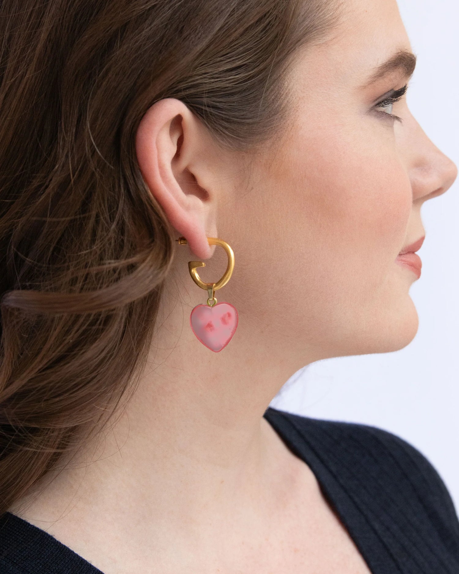 Get two earrings in one with the versatile SUSAN SHAW - Gigi Heart Earrings - PINK QUARTZ! For a whimsical look, wear them with their genuine stone heart drop in PINK QUARTZ. For a simple everyday look, simply slip off the drop and wear the G-shaped hoops on their own. We love the SUSAN SHAW - Gigi Heart Earrings - PINK QUARTZ because they make an impact while remaining lightweight and comfortable to wear.