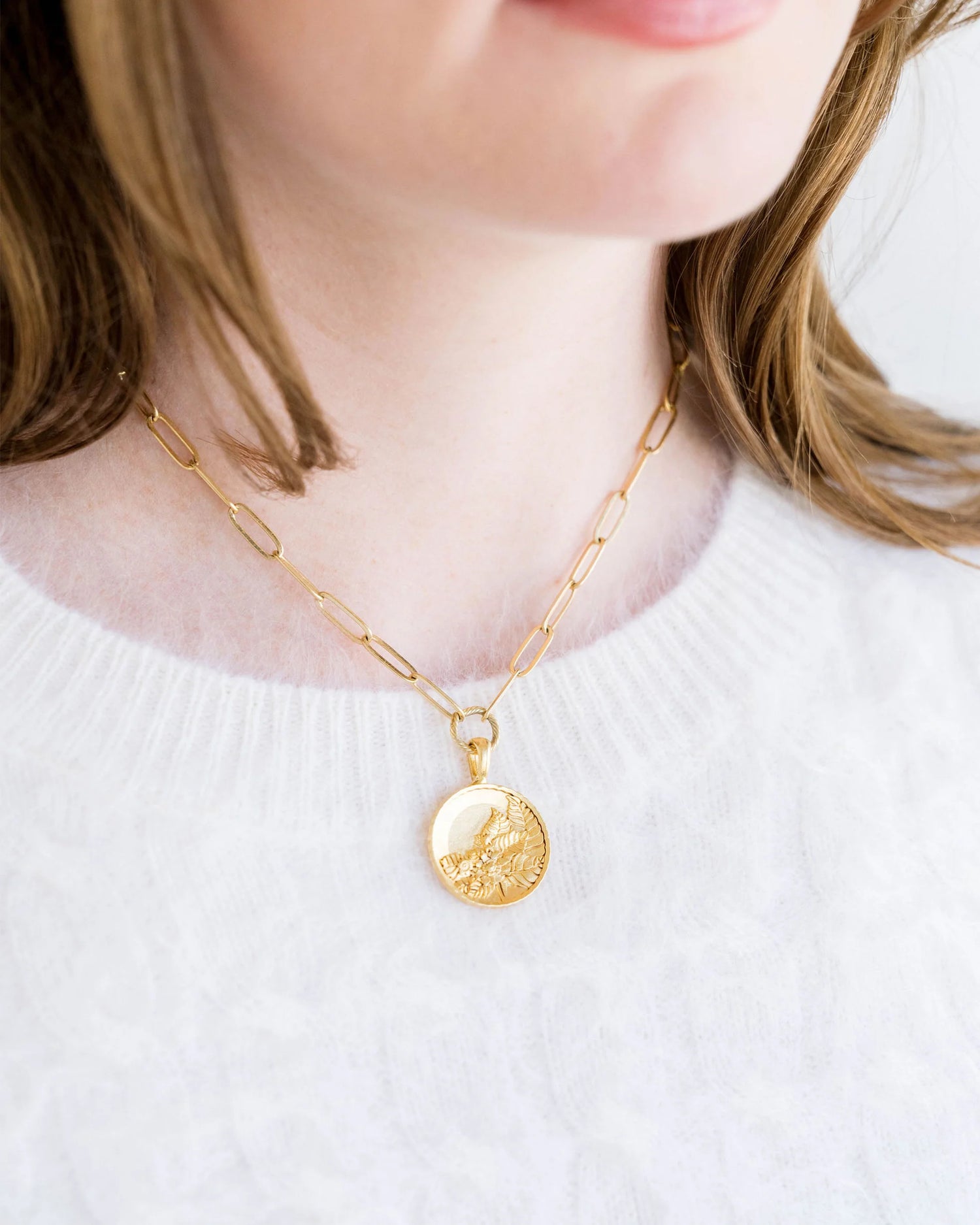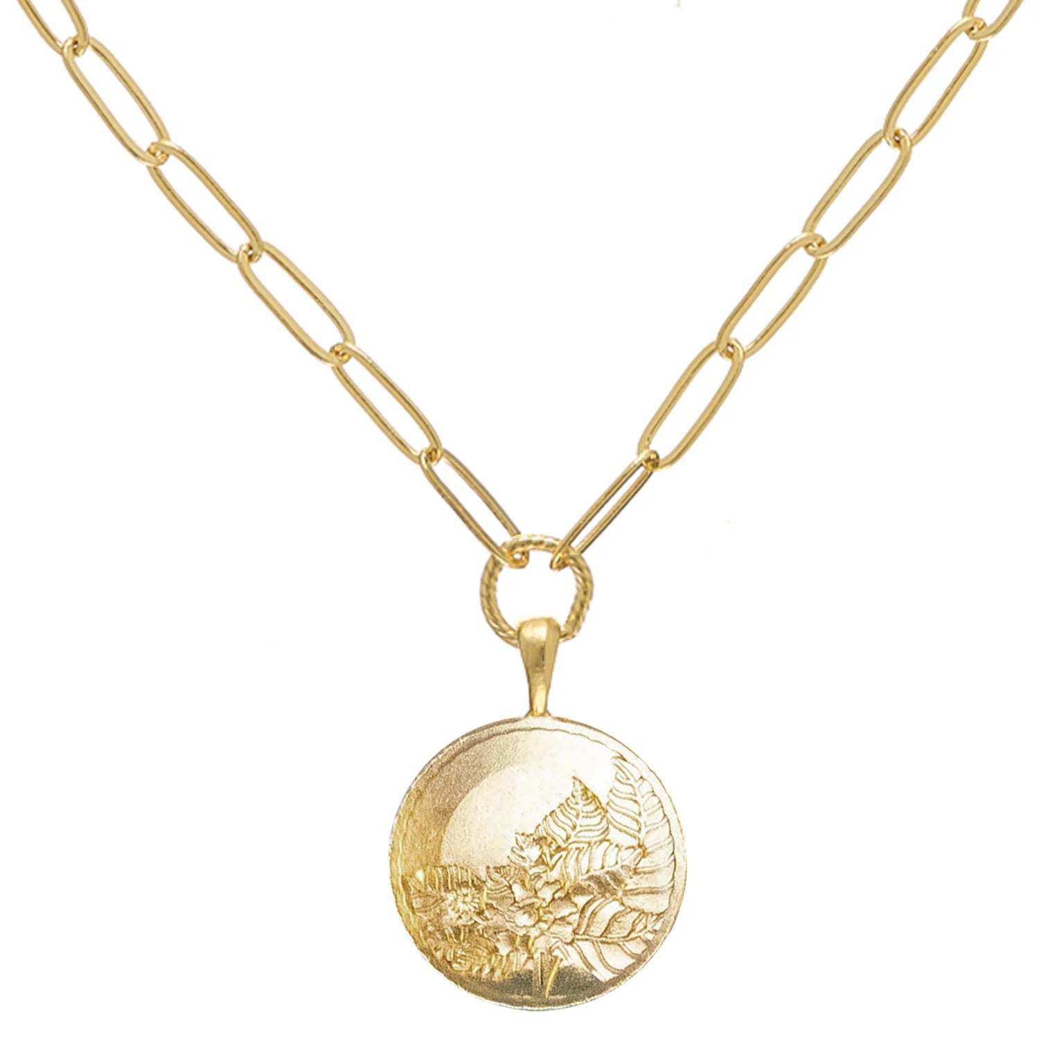 Discover the timeless elegance of the Susan Shaw - Necklace - Tobacco Leaf Paperclip, a stunning piece that beautifully marries history and modern design. Inspired by the revered Tobacco Leaf pattern from 14th century China, this necklace features a delicate circular pendant adorned with intricate floral and leaf motifs, symbolizing the beauty of nature. Crafted with care in San Antonio, TX, the necklace boasts a triple-plated 24K gold finish, ensuring lasting shine and durability. Measuring 16 inches with a 3 inch extender and a 1 inch pendant, it is designed to complement any outfit, making it a versatile addition to your jewelry collection. Each piece is handmade, allowing for a unique touch that enhances your personal style. Pair the Susan Shaw - Necklace - Tobacco Leaf Paperclip with other pieces from our collection for a chic layered look, or wear it solo for a subtle statement. Keep your jewelry in pristine condition by following our care tips, and enjoy the luxury of this exquisite necklace for years to come.