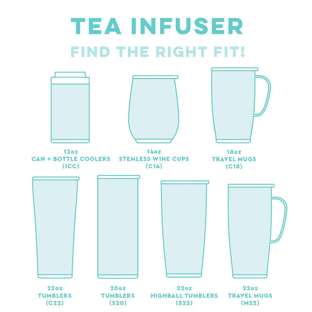Experience the ultimate brewing solution with the Swig - Stainless Steel Tea Infuser with Silicone Cover, designed for tea and coffee aficionados. This premium infuser features a fine mesh basket that effectively prevents broken tea leaves from contaminating your beverage, while its spacious design allows leaves to expand and infuse flavors rapidly. The silicone cover not only serves as a protective lid but also functions as a convenient coaster, ensuring a mess-free experience. Crafted from durable 304 18/8 stainless steel, this infuser is compatible with a variety of Swig products, including 18oz and 22oz travel mugs, 20oz and 22oz tumblers, 12oz can and bottle coolers, and 14oz stemless wine cups. Enjoy your favorite brewed beverages with the Swig - Stainless Steel Tea Infuser with Silicone Cover.