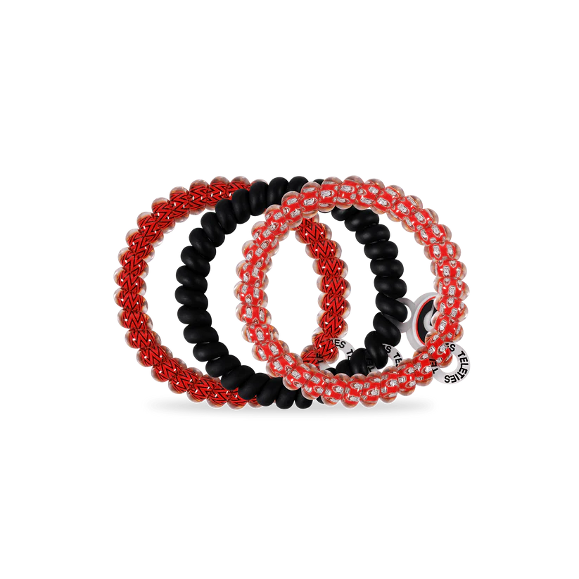 Teleties - Go Dawgs! Small Hair Ties in Black and Red offer a strong grip without damage, doubling as a chic wrist accessory when not in use. Your new favorite hair essentials all year round. Shop your favorite University of Georgia hair accessories now! Go Dawgs!