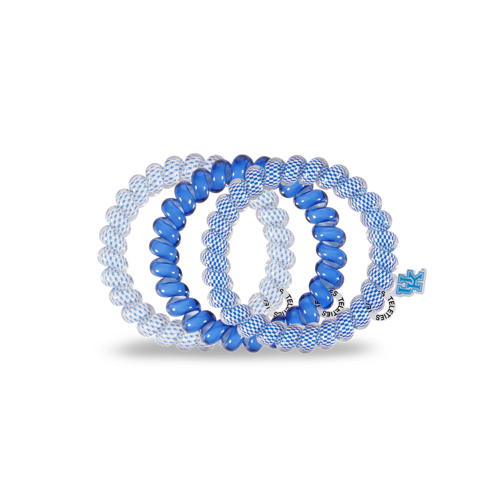 Teleties - Large Hair Ties - University of Kentucky are the perfect blend of functionality and style, designed to hold your hair securely while enhancing your look. These large hair ties, measuring 2.56 inches wide and 0.39 inches thick, provide a strong grip without causing damage, making them gentle on your hair to prevent breakage, headaches, and creases. When not in use, they double as a chic bracelet, allowing you to showcase your team spirit effortlessly. Durable and waterproof, these hair ties are ideal for any occasion, ensuring you stay stylish all year round. Sold in packs of three, Teleties - Large Hair Ties - University of Kentucky are your new go-to hair essentials.