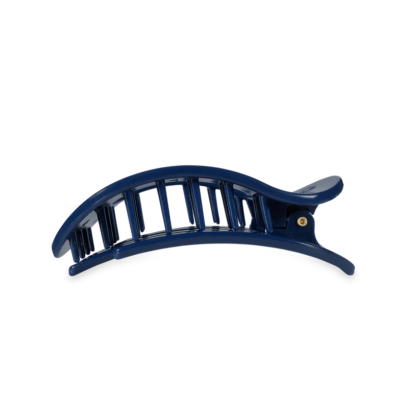 Lay flat and relax with the new TELETIES x MLB® Atlanta Braves Medium Flat Round Hair Clip in Navy. This hair clip is designed to allow you to lay back flat, do yoga, or sit comfortably in a seat with a headrest, and it is made with the same material that is nearly unbreakable.