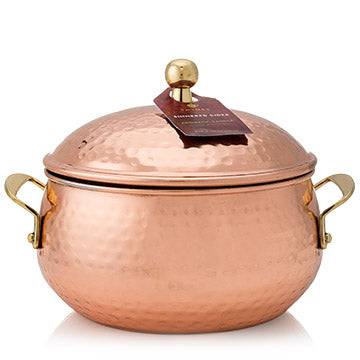 Reminiscent of a simmering pot of your favorite holiday drink, this beautiful statement multi-wick candle stuns with copper and gold accents. Warm any room with notes of apples, crushed cardamom and clove and hints of bourbon & malted rum for a rich, spicy scent that’s steeped in tradition. Once burned through, this food-grade piece is great for re-use! Our non-metal wicks provides a clean, pure burn time of approximately 68 hours.