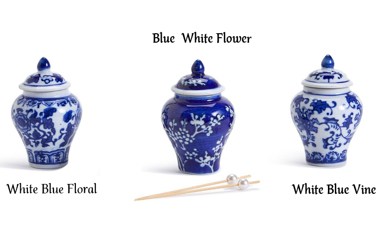 Add a touch of charm to your kitchen with our Toothpick Holder - Ginger Jar. This delightful mini version of the traditional ginger jar is beautifully hand-painted in classic blue and white porcelain, making it a stunning decorative piece. Each jar features assorted patterns, chosen at random unless specified in your order notes, and based on availability, ensuring a unique addition to your home. Included with the jar are 20 reusable bamboo picks, each adorned with a shiny pearl for an elegant touch. Beyond its primary function, this mini jar is perfect for holding tiny knick-knacks or delicate flower buds, adding versatility to its appeal. The jar measures 3.25 inches in height and 2 inches in diameter, while the gift box dimensions are 2.25 inches by 2.25 inches by 4 inches, making it an ideal gift for any occasion.
